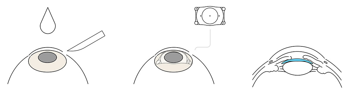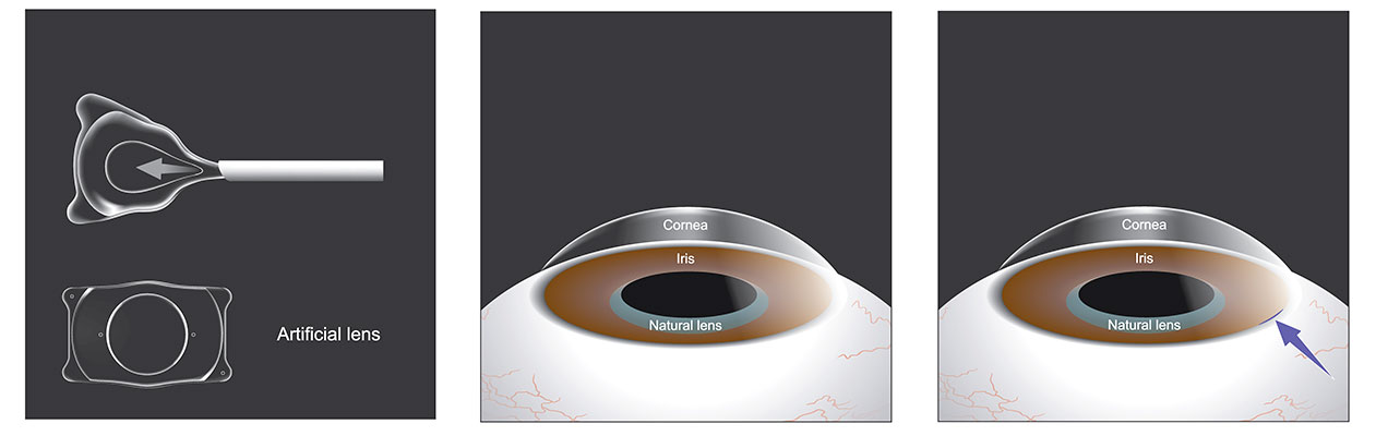 • La lentille est placée sans douleur derrière l’iris par une petite ouverture.